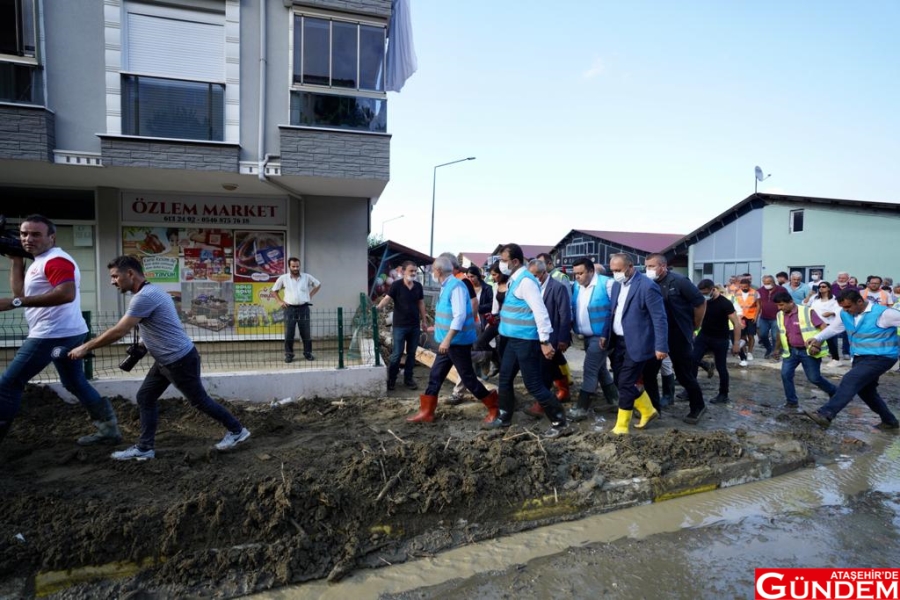 Başkan İmamoğlu ile birlikte İBB’ye ait yardım çadırına da uğrayan Kılıçdaroğlu, görevlilere, en çok ihtiyaç duyulan malzemelerin ne olduğunu sordu. Kılıçdaroğlu, görevlilerden gelen listeyi, yanında bulunan belediye başkanlarına ve diğer yetkililere iletti. Selden en fazla zarar gören çamur içindeki sanayi sitesini de dolaşan heyet, işçiler ve iş verenlerden gelen sorunları ve talepleri dinledi. Selde ailesini kaybettiği için askerden izinli olarak memleketine gelen bir genç, “En azından bir mezarları olsun” diyerek, yardım talebinde bulundu. Kılıçdaroğlu ve acılı genç arasında yaşanan diyalog, duygusal anların yaşanmasına neden oldu. İmamoğlu ve beraberindeki heyet; adım adım, sokak sokak, dükkan dükkan gerçekleştirdiği Ayancık ziyaretini, Belediye binasında noktaladı. Kılıçdaroğlu ve İmamoğlu, yarın da sel felaketinden büyük yara alan Kastamonu’nun Bozkurt ilçesini ziyaret edecek.