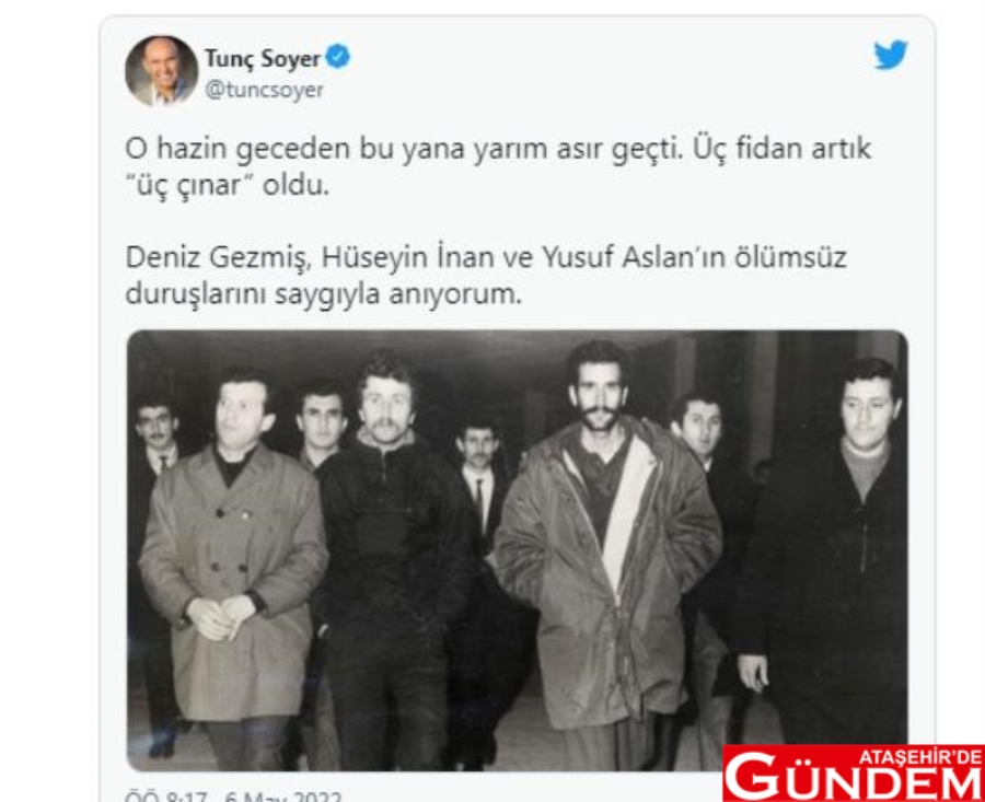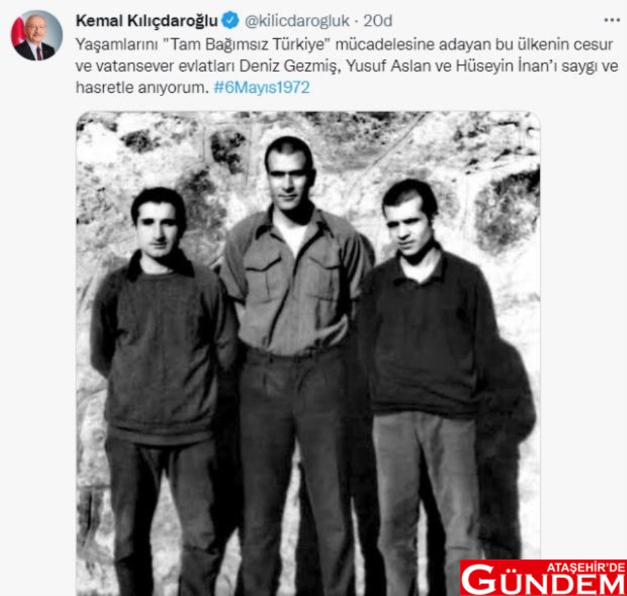 Kemal Kılıçdaroğlu: "Yaşamlarını "Tam Bağımsız Türkiye" mücadelesine adayan bu ülkenin cesur ve vatansever evlatları Deniz Gezmiş, Yusuf Aslan ve Hüseyin İnan'ı saygı ve hasretle anıyorum."son dakika.com