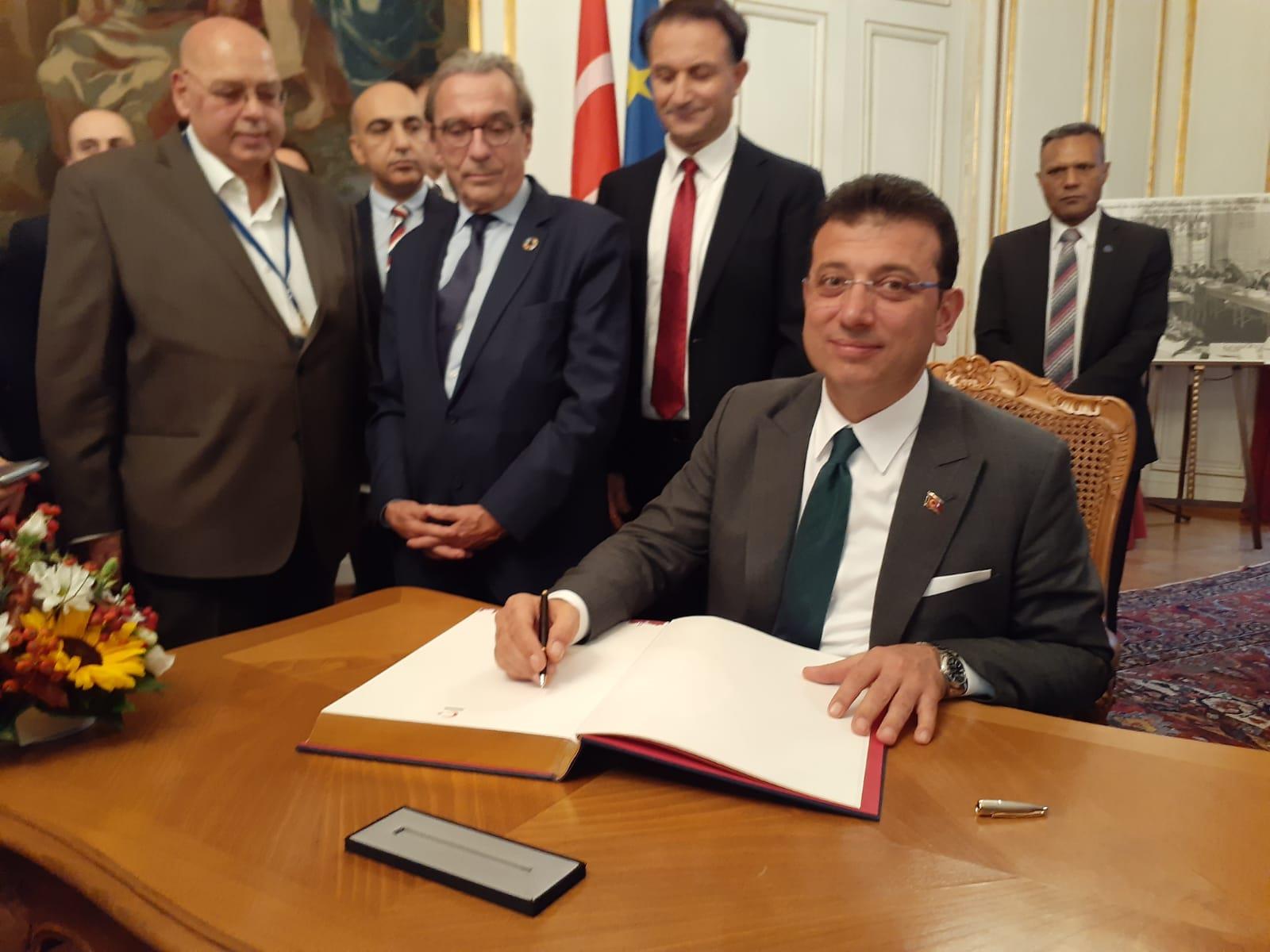 İmamoğlu, kongredeki konuşmasının ardından Strasburg Belediye Başkanı Roland Ries’i makamında ziyaret etti. İzmir Büyükşehir Belediye Başkanı Tunç Soyer, Büyükçekmece Belediye Başkanı Hasan Akgün ve Bakırköy Belediye Başkanı Bülent Kerimoğlu da ziyarette yer aldı. Başkanların ziyaretinden duyduğu memnuniyeti dile getiren Ries, “Bizim de dikkat ettiğimiz, Türkiye ve Fransa ya da AB arasındaki ilişkilerin karışık durumuna rağmen, Türk ve Fransız yerel ve bölgesel yönetimleri, daha geniş bir çerçevede Avrupa’da, sivil toplumları ve özellikle gençleri arasında zengin ve yapıcı bir diyaloğun sürdürülmesi adına ilişkilerini güçlendirmelidir. Bu bağlamda, beraber geleceğe dönük bir yatırım yaptığımız için İBB Başkanı sayın İmamoğlu’nu ağırlamaktan büyük bir memnuniyet duyuyorum” dedi. İmamoğlu da Ries’in sözlerine, “Türkiye’nin ve Avrupa’nın en büyük kenti olan ve ülkemizin kültür, sanat ve ekonomik merkezi pozisyonundaki İstanbul’un Avrupa’nın başkenti Strasburg kenti ile, dostluk temelli ve sürdürülebilir ilişkiler kurması, Türkiye, Fransa ve AB için son derece değerlidir. Bu maksatla sayın Başkan Roland Ries’in davetiyle burada olmaktan büyük memnuniyet duydum” şeklinde karşılık verdi. Makam odasından belediye binasındaki salona geçen başkanlar, çoğunluğu Strasburg’da yaşayan Türk vatandaşlarından oluşan bir toplulukla bir araya geldi. İmamoğlu ve Ries, burada da birer konuşma yaptı. İmamoğlu, konuşmaların ardından “Şehir Şeref Defteri’nin adı, İstanbul silueti ve Türk bayrağı baskılı olan sayfasına duygularını yazdı.