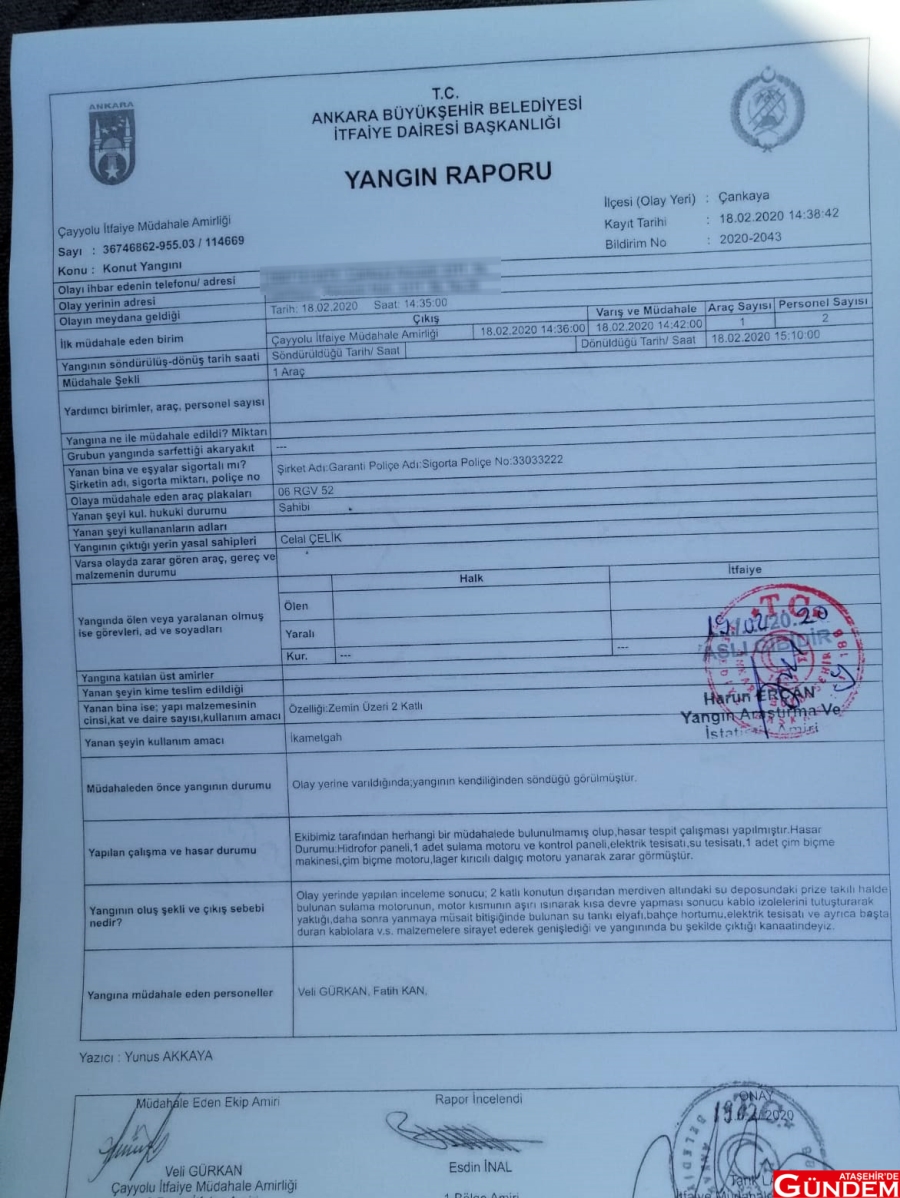 Celal Çelik, “Raporda motorun ısınmasından yangının çıktığı yazılıyor ancak motor kesinlikle çalışmıyordu. Fişinin takılı olduğuna dahi ihtimal vermiyorum. Motor bahçe sulama sistemimin motoru olduğundan sadece yazın çalıştırılıyor” ifadelerini kullandı.ODATV