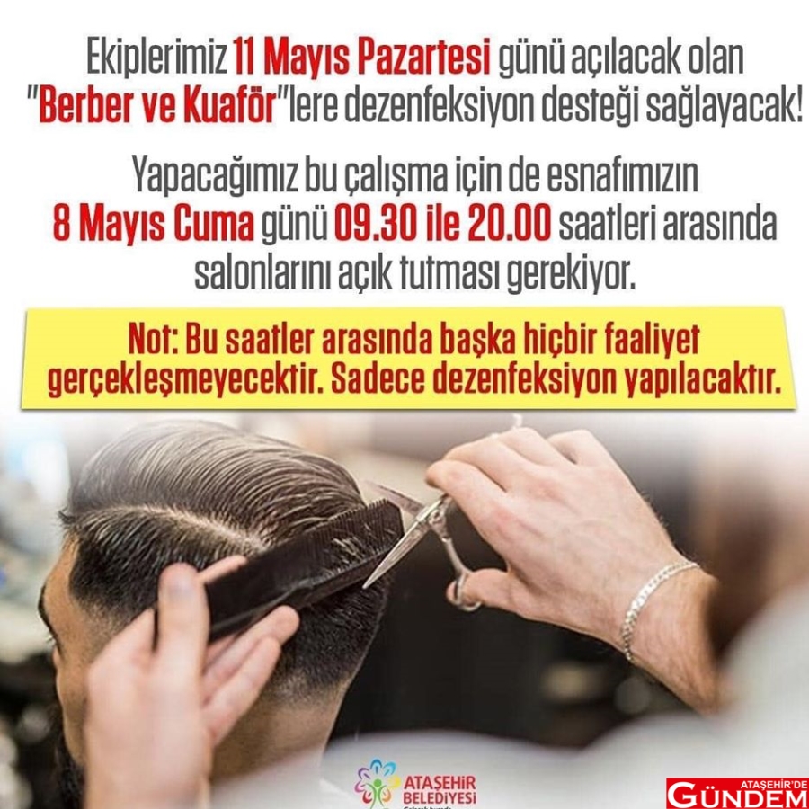 Cumhurbaşkanı Recep Tayyip Erdoğan, pandemi sonrası normalleşme süreciyle ilgili 11 Mayıs tarihini göstermesi üzerine Ataşehir Belediyesi de normalleşmenin birinci aşamasında uzun süredir kapalı olan berberler ve kuaförlere dezenfekte desteği vererek hazırlık çalışmalarına başladı.