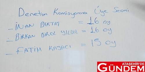 Konuşmaların ardından gündeme geçildi. Denetim Komisyonu için yapılan oylamada İnan Bektaş ve Birkon Birol Yıldız 16, Fatih Kayacı 15 oy alarak Denetim Komisyonu’na seçildiler.