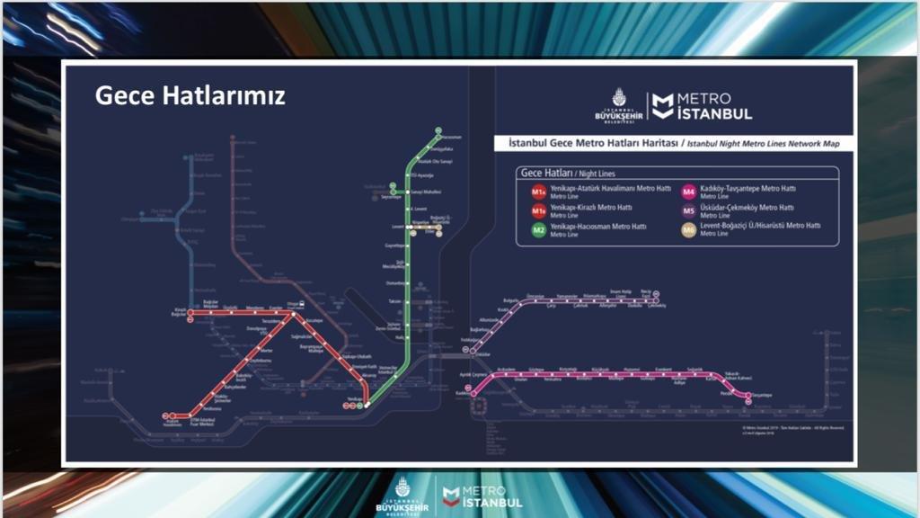 Uygulama ile İstanbul, gece metro hizmeti veren New York, Londra Berlin, Tokyo, Viyana, Minneapolis, Chicago,Philadelphia, Kopenh.ag ve Sidney’den sonra dünyadaki sekizinci şehir olacak. İlk etapta 6 hatta gece toplu taşıma hizmeti verecek İstanbul, hat sayısı açısından Newyork ve Tokyo’nun ardından üçüncü sırada yer alacak.
