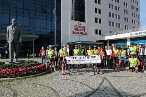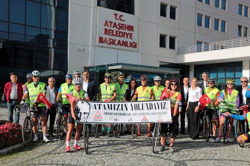 Ataşehir Belediye Başkan Yardımcıları Abdullah Der, Kalender Özdemir, Ekrem Köse ve birim müdürleri tarafından Anıtkabir’e uğurlanan bisikletliler, bu yolculuğun ardından 10 Kasım Pazar günü 81 ilden gelen diğer bisikletlilerle birlikte Aslanlı Yol’dan geçerek Ata’nın huzuruna çıkacaklar. Anıtkabir’e ulaşan bisikletliler, Ataşehir Belediyesi’nden aldıkları Türk Bayrağı’nı Anıtkabir’e bırakacaklar.