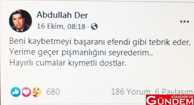 Ataşehir Belediyesi Sosyal Yardım İşleri Müdürü Gürsel Sarımaden Ataşehir Belediyesi Başkan Yardımcısı Abdullah Der tarafından görevden alındı. Yaşanan bu hadise Abdullah Der’in geçtiğimiz günlerde resmi sosyal medya hesabından yapmış olduğu, “Beni kaybetmeyi başaranı efendi gibi tebrik eder, yerime geçer pişmanlığını seyrederim.” paylaşımı Sarımaden ile ilişkilendirildi.