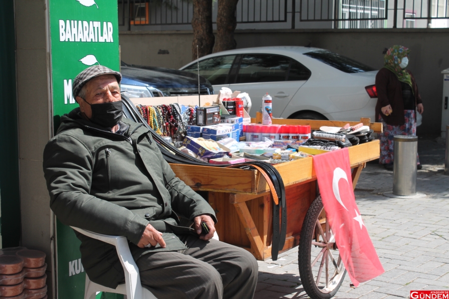 Mehmet Yılmaz: "Bizleri bunalttı. İnan artık kapıdan dışarı çıkamaz olduk. Rezil olduk. Kepaze olduk. Artık Allah’tan korkuyorum. Ne diyeyim… Bu nedir ya? Tamam, hastalık var ama bu kadarı da olmaz. İnan, çok bunaldık. Hanımım hasta dışarı çıkamıyor. Ben çıkamıyorum. Yolun başından buraya zor geliyorum. Başka bir gelirim yok. Gelirim sadece bu tezgah. Çalışıyordum, ameliyat oldum maaşımı kestiler. Yüzde 83 raporluyum. Raporumla bana bir sene maaş verdiler. Bir sene sonra otomatik olarak durdurdular. Ne gelirim var ne başka bir şeyim… Perişan durumdayım. Utanıyorum bunu söylerken. Ben 72 yaşındayım. Ben bu vaziyette 3-5 kuruş kazanmaya çalışıyorum. Yazık günah değil mi bana? Kızımın dükkanı vardı, kapandı. Kiraları ödeyemedik. Oğlum var boşta. İş istedim vermediler. Adamına göre muamele yapıyorlar. Her şey adamına göre olmaz. Herkesi bir tutacaksın."