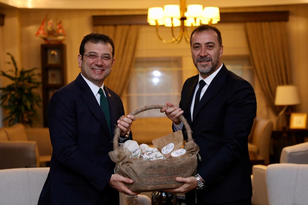 İstanbul Büyükşehir Belediye (İBB) Başkanı Ekrem İmamoğlu, Silivri Belediye Başkanı Volkan Yılmaz’ı ziyaret etti. Silivri ile 14’ncü ilçe belediyesi ziyaretini gerçekleştiren İmamoğlu’na İBB üst yönetimi tam kadro eşlik etti. Yılmaz’a misafirperverliğinden dolayı teşekkür eden İmamoğlu, “Belediye başkanımızla, Büyükşehir’le olan sürecini konuşacağız uzun uzun. Önümüzdeki sürece dair, geçmişten gelen hangi konular var, geleceğe dair neler yapılmalı, ortak akılla süreci yönetmeye dair prensibimize dönük Silivri’nin her konusunu konuşmaya çalışacağız” dedi. Silivri’nin kırsalı en geniş olan ilçelerinden bir tanesi olduğunu belirten İmamoğlu, “Dolayısıyla o boyutuyla ele alacağımız konularımız var. Başkan’ımıza teşekkür ederiz. Şu kalan ilçelerimizi 15-20 gün içerisinde bitirmeyi hedefliyoruz. Ocak ayının sonuna kalmasın istiyoruz. İnşallah o süreci tamamlayıp artık, ortak çalışma kültürünü şehrin her ilçesinde yaygın hale getirme çabasında olacağız. Bugün dolu dolu Silivri olsun istiyoruz.” diye konuştu.