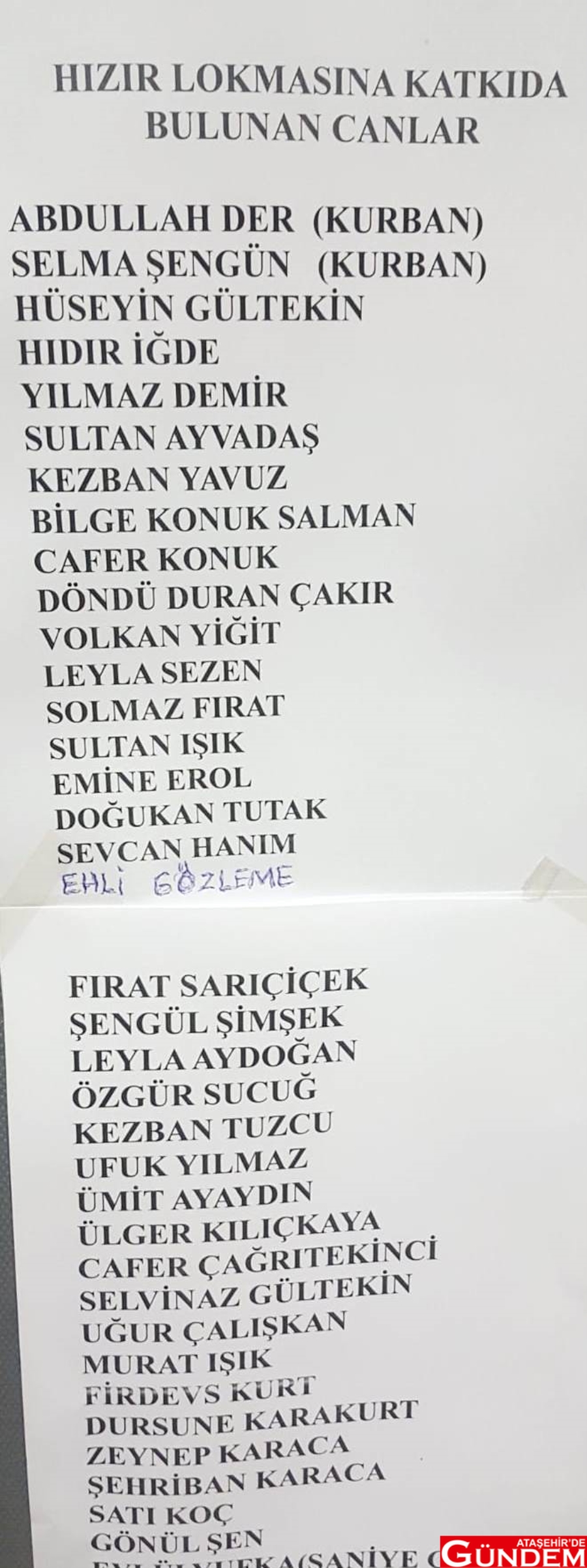 HIZIR LOKMASINA KATKIDA BULUNANLAR
