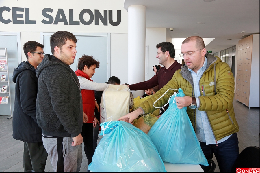 Deprem bölgesinde acil ihtiyaç duyulan malzemelerin toplanması, ayrıştırılması, paketlenmesi ve ulaşımının sağlanması için görev dağılımı gerçekleştirildi.