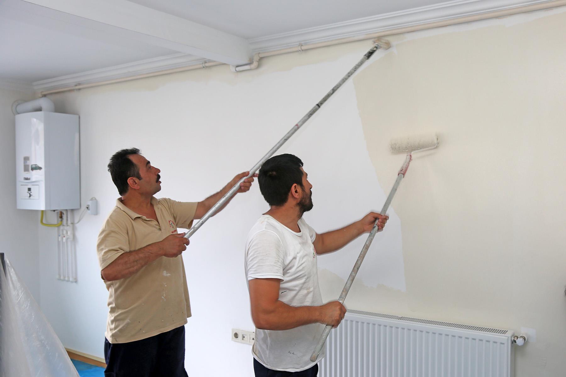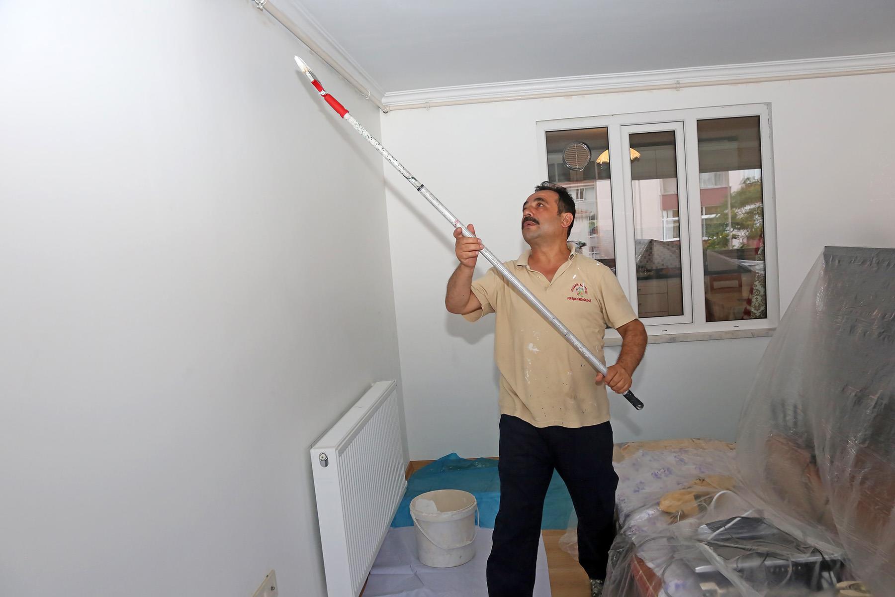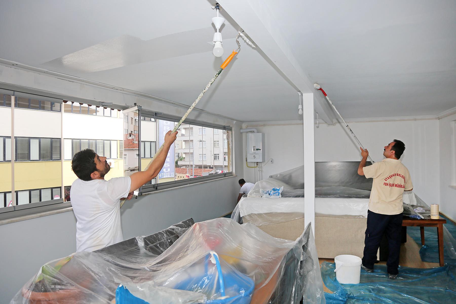Akıtan çatılar ve rutubet gibi nedenlerle tavan ve duvar boyalarında bozulma olan evlerde yaşayan engelliler, Türkiye Sakatlar Derneği Ataşehir Şubesi’ne başvurarak randevu alıyorlar. Ardından belediyenin sağladığı boyama ekipleri sabah evlere giriyor, eşya ve yerleri boya düşmemesi için naylonla kaplıyor, tavan ve duvarları boyuyor, akşamına da yeni haliyle teslim ediyor.