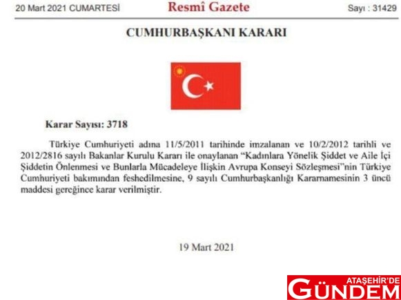İSTANBUL SÖZLEŞMESNİ'NİN FESHİNİN RESMİ GAZETE'DE YAYIMLANAN CUMHURBAŞKANI KARARI