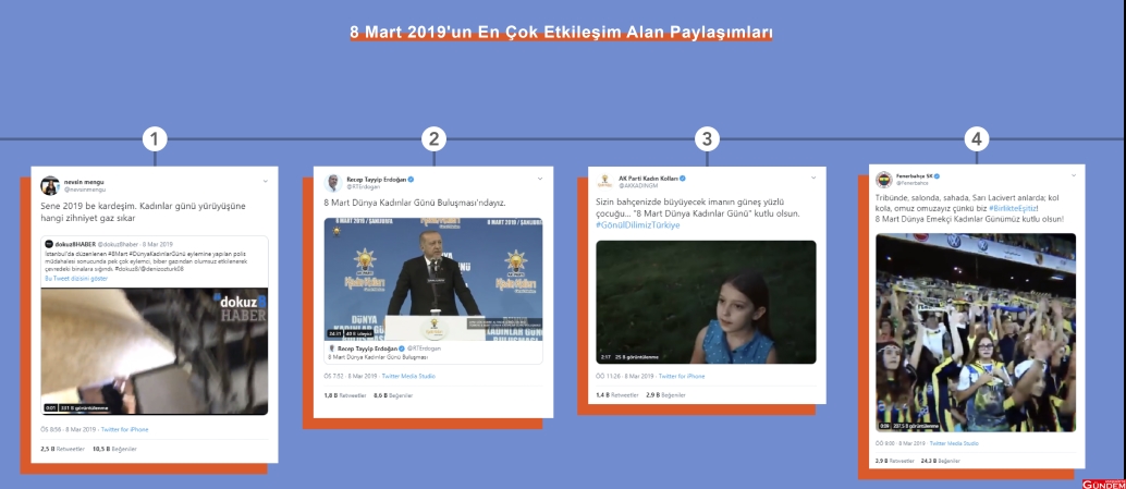 8 Mart hakkında 2019 yılındaen çok etkileşim alan tweetler şu şekilde: