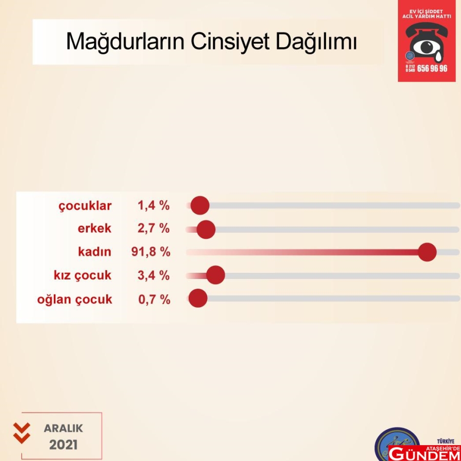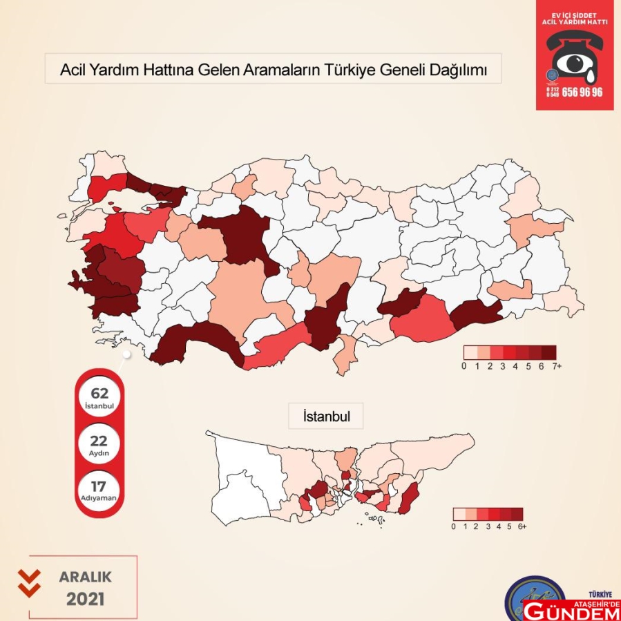 Türkiye Kadın Dernekleri Federasyonu tarafından yönetilen “Ev İçi Şiddet Acil Yardım Hattı” için yalnızca 1-31 Aralık 2021 tarihleri arasında 647 çağrı alındığı belirtildi. Aralık ayında ulaşılan yardım çağrısı ile bir önceki ay arasında yaklaşık yüzde 50 artış olduğu gözlendi. Gelen çağrılar sonucunda ise 170 vaka dosyası açıldı.