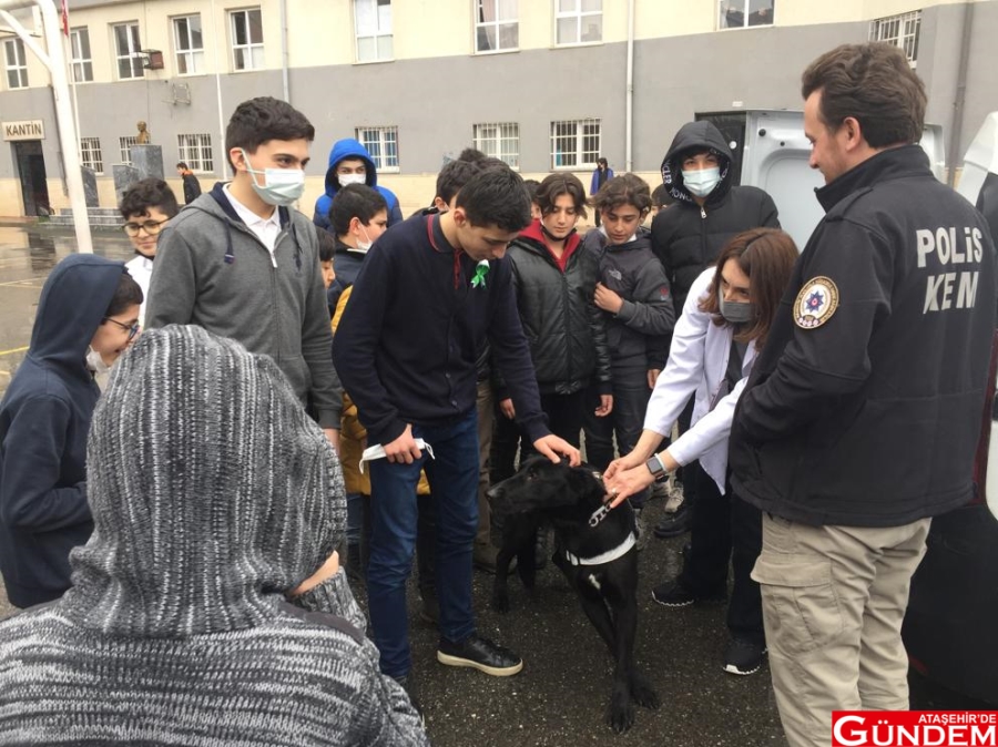 Ataşehir İlkokulu'nda ”Geleceğe atılan Güvenli Adımlar Projesi” kapsamında Emniyet Teşkilatının Narkotik Suçlarla Mücadele Şube Müdürlüğüne bağlı KEM ( Köpek Eğitim Merkezi) ve TUBİM personelleriyle geleceğin güvenceleri olan gençlerle buluşma sağlanarak teşkilata ait eğitimli köpeklerin gösterileriyle Yeşilay Haftası kutlaması son buldu.