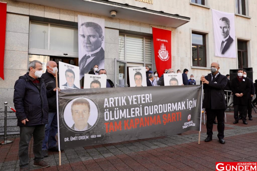 Törenin ilk konuşmasını İstanbul Tabip Odası Başkanı Prof. Dr. Pınar Saip yaptı. Sağlık çalışanlarını ve vatandaşlarımızı önlenebilir bir hastalık nedeniyle kaybettiğimizi belirten Saip, merhum Erdem’i, “Koruyucu hekimliği bilen, işyerlerinde güvenli çalışma koşullarının sağlanması gerektiği konusunda yıllarca emek vermiş, iyi hekimlik değerleri konusunda gereken her şeyi yapmış ve iş kazaları ve meslek hastalıkları konusunda büyük çabaları olan bir arkadaşımız” sözleriyle tanıttı. Ölümlerin önlenmesi için “tam kapanmanın” şart olduğunu vurgulayan Saip, “Ne yazık ki, Eylül’ün başından beri gerekli önlemler alınmamış ve gereksiz yere bir sürü vatandaşımız önlenebilir bir hastalık nedeniyle ölmüştür. Salgının başından beri ne fazla test yaparak ne verileri şeffaf paylaşarak salgını doğru dürüst yürütemeyen iktidara, artık algıyı değil salgını yönetmesi çağrısı yapıyoruz” dedi.