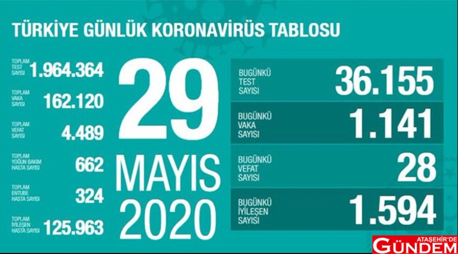 Uzmanların fiziksel mesafe ve maskeye dikkat çektiği açıklamalarla vatandaşlara duyarlı olma çağrısı yaptığı Koronavirüs salgınıyla mücedele devam ediyor. 11 Mart'ta ilk vakanın görülmesinden bu zamana kadar 162 bin 120 vakanın yer aldığı Türkiye Günlük Koronavirüs Tablosu'nda bugün yapılan test sayısı 36 bin 155 olduğu belirtildi. Vefat sayısının ise 28 olduğu açıklandı.