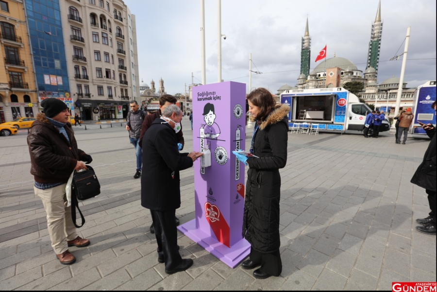 Kentin en çok kullanılan noktalarından olan; Taksim Meydanı Metro Çıkışı, Eminönü Meydanı İBB İletişim Noktası Önü, Kadıköy İskelesi İBB İletişim Noktası Önü, Bağcılar Meydanı, Üsküdar İskelesi İBB İletişim Noktası Önü ve Esenyurt Meydanı’nda yapılan etkinliğe İstanbullular yoğun ilgi gösterdi. Dezenfektasyon noktalarından biri olan Taksim Meydanı Metro Çıkışı’nda bulunan Dr. Rümeysa İbişoğlu etkinlik hakkında şu bilgileri verdi: