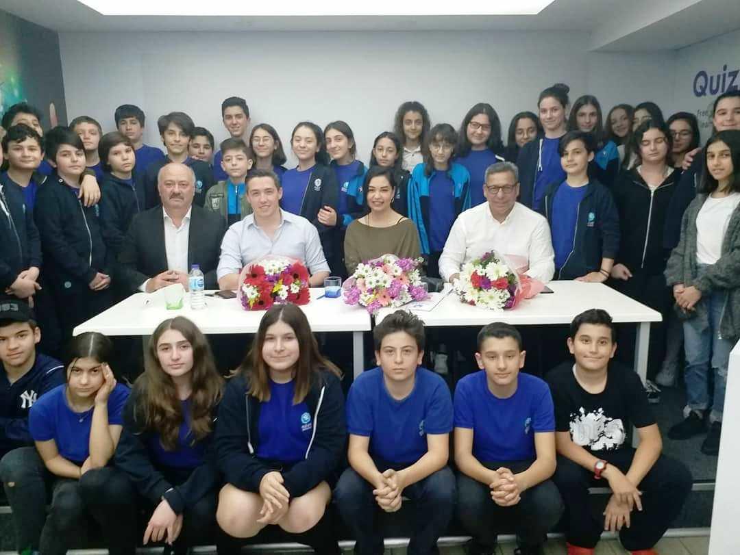 Uluslararası ödüllü Arp Sanatçısı Merve Kocabeyler, Fenerbahçe’nin ve milli takımın unutulmaz futbolcusu Türk Futbol Vakıf Başkanı Engin Verel ile birlikte TV- Radyo Yapımcısı Yetkin Etkin’i okullarında ağırlayan İkizler Koleji, sanatın, sporun ve medyanın bilinmeyenelerini öğrencilerine sundular. Keyifli bir sohbetin yaşandığı buluşmada öğrenciler merak ettiklerini davetlilere sorarken, yakın geleceğin emanetçilerinin ilgileri karşısında davetliler de memnuniyetlerini dile getirdiler. Buluşma sonunda Merve Kocabeyler, Engin Verel, Yetkin Etkin ile öğrenciler hâtıra fotoğrafı çektirerek ânı ölümsüzleştirdiler.