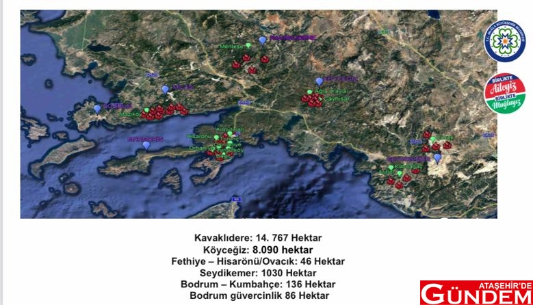 28 Temmuz’da başlayan yangınlar Ege ve Akdeniz Bölgeleri’nde korkunç kayıplara yol açtı. Yer yer soğutma işlemlerinin gerçekleştirildiği bölgeler sevindirirken kontrol altına alınmayan bölgeler için ekipler alanda nöbet tutuyor. 29 Temmuz 2021 Perşembe günü Ege bölgesi Muğla Marmaris, Milas ve Bodrum ilçelerinde 30 Temmuz’da ise Fethiye’ye sıçrayan yangın Köyceğiz Kavaklıdere, Seydikemer Menteşe ilçelerinde devam etti. Marmaris bölgesinde 13 bin hektar alanın yandığını belirten yetkililer bölgede soğutma işlemlerinin devam ettiğini de raporladı. Marmaris ilçesinde yangın söndürme çalışmaları Hisarönü, Orhaniye, Bayır, Osmaniye ve Çiftlik Mahalleleri olarak beş farklı bölgede devam ettiği belirtildi. Milas bölgesinde de söndürme çalışmalarının birçok noktada devam ettiğinin bilgisi paylaşıldı.