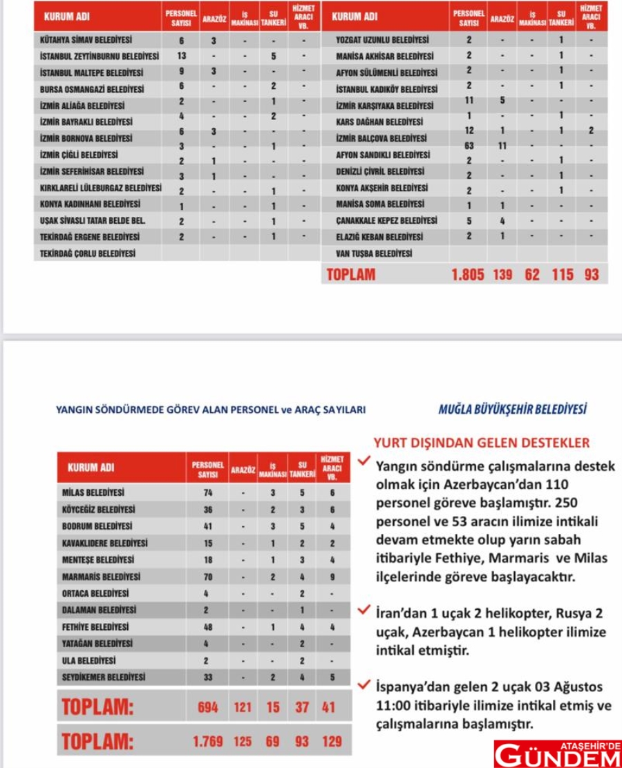 Türkiye’nin ciğerleri günlerdir yanıyor. Ege ve Akdeniz Bölgeleri’nde yaşanan orman yangını için Muğla Büyükşehir Belediyesi bölgesinde inceleme başlatıp yangın raporu hazırladı. Raporda soğutma çalışmalarının devam ettiği bölgeler ile yanan alanların tespiti listelendi. Öte yandan raporda yangın söndürmeden görev alan personel sayısına, yurt dışından gelen yardımlardan, yangın bölgesinde görevli araçlara ve yetkililer tarafından tehlikeli görülen bölgeler için tahliyelerin gerçekleştirildiği ilçeler de yer alıyor.