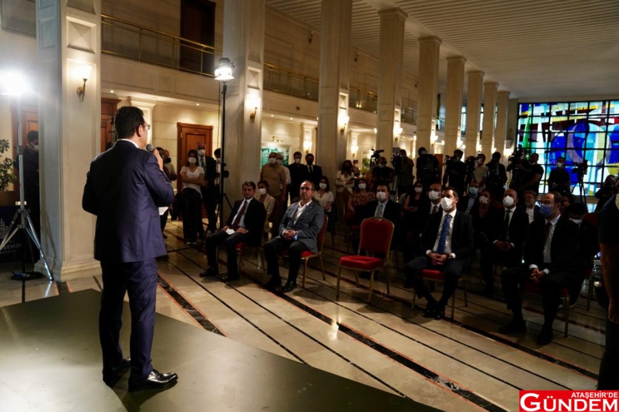 Tören için kurulan ve üzerinde “Adalet ve Hukuka Hükmedenler: İstanbul’un Sultanları Evinde” yazılı platforma, ilk olarak 25 Haziran 2020’de Londra’daki dünyaca ünlü Christie’s salonundaki müzayedede İBB tarafından satın alınan Fatih Sultan Mehmet Han’ın portresi asıldı. Törende bir konuşma yapan İmamoğlu, Kanuni tablosu ile teknik bilgileri basın mensuplarıyla paylaştı. Kendisinin de Kanuni gibi Trabzon’da doğduğunu belirten İmamoğlu, “1461’de Fatih Sultan Mehmet tarafından fethedilen Trabzon, Kanuni Sultan Süleyman’ın da doğumuna şahit olmuş bir kent. Yavuz Sultan Selim’in Trabzon valiliği sürecinde doğan Kanuni Sultan Süleyman, burada doğup 14 yaşına kadar yaşıyor. İki padişahın Türk tarihine, Osmanlı tarihine verdikleri o önemli katkıyı derinden hisseden bir insan olarak büyüdüm. Zira ilkokulumun adı da Kanuni Sultan Süleyman İlkokulu’ydu. Dolayısıyla hem Fatih Sultan Mehmet hem de Kanuni Sultan Süleyman bizler için, ailelerimiz için bambaşka bir yere sahiptir” dedi.