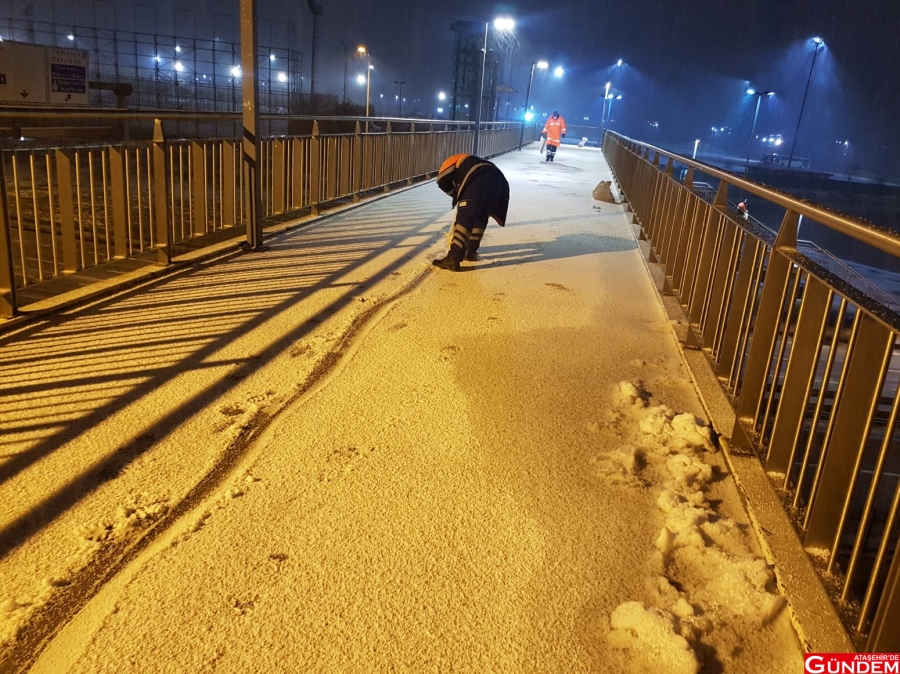 İstanbul genelinde 60 noktada kurulan BEUS’tan (Buzlanma Erken Uyarı Sistemi) gelen mesajlar doğrultusunda ekipler çalışmalarını yürütüyor. Ekiplerin takibi ve yönlendirilmesi araç takip sistemi üzerinden sağlanıyor. Kritik noktalara kutu tuzlar bırakıldı. Gelen veriler ışığında üstgeçitler, otobüs durakları, meydanlar, gibi kritik noktalarda da kar birikintilerine ve buzlanmalara ekipler tarafından müdahale edilecek. İBB Yol bakım ekibi şu zamana kadar 9 bin 53 ton tuz, 4 ton da solüsyon döktü.