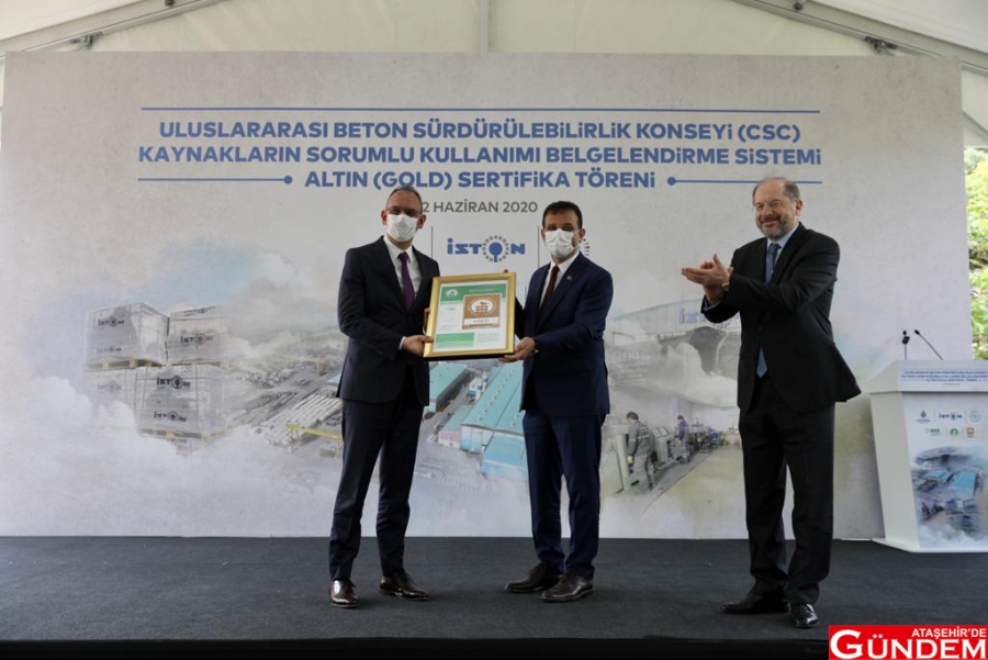 İstanbul Büyükşehir Belediye (İBB) Başkanı Ekrem İmamoğlu, şehrin altyapı ve üstyapı kentsel donatı ihtiyaçlarını karşılayan İSTON’un Uluslararası Beton Sürdürülebilirlik Konseyi (CSC) tarafından gold (altın) sertifika ile ödüllendirildiği törene katıldı. İmamoğlu, İBB iştiraki İSTON’un Tuzla’daki tesislerinde gerçekleştirilen tören öncesinde, Avrupa Hazır Beton Birliği (ERMCO) ve Türkiye Hazır Betoncular Birliği (THBB) Başkanı Yavuz Işık ve İSTON Genel Müdür Ziya Gökmen Togay ile bir araya geldi. İBB üst yönetiminin de hazır bulunduğu ortamda bir süre baş başa görüşen heyet, daha sonra tören alanına geçti. Törende ilk konuşmaları, Togay ve Yazıcı gerçekleştirdi.