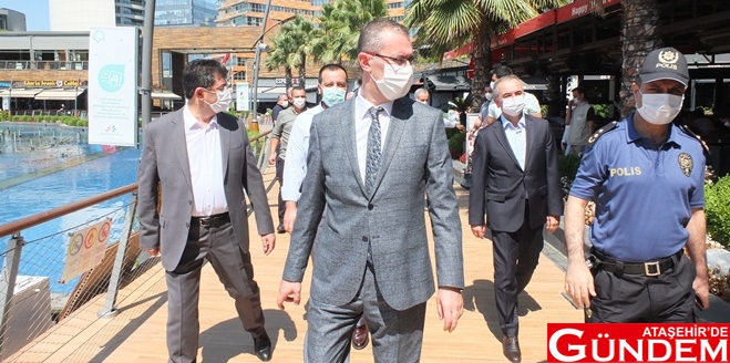 Ataşehir Kaymakamı İsmail Hakkı Ertaş, İlçe Emniyet Müdürü Mesut Aslan, Ataşehir Belediye Başkan Yardımcıları Orhan Çerkez, Ekrem Köse, İlçe Tarım Müdür vekili ve İlçe Sağlık Müdürü ile birlikte Watergarden AVM’de yaptığı denetimde vatandaşlara maske, mesafe ve temizliğe dikkat edilmesi konusunda uyarılarda bulunarak; sadece kendimizi değil etrafımızdakileri de denetleyerek kurallara uymayanları da uyaralım dedi.