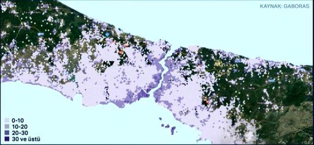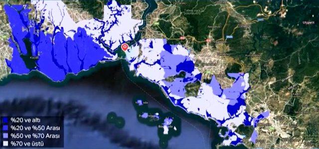Avrupa Yakası'nda ise özellikle 'Risk Haritası'nda fay hattına yakınlığı ile bilinen kırımızı alan içerisinde yer alan ilçelerde kaya yoğunluğunun yer yer yüzde 20'nin altında ağırlıkla ise yüzde 20 ile 50 arasında olduğu gözüküyor.