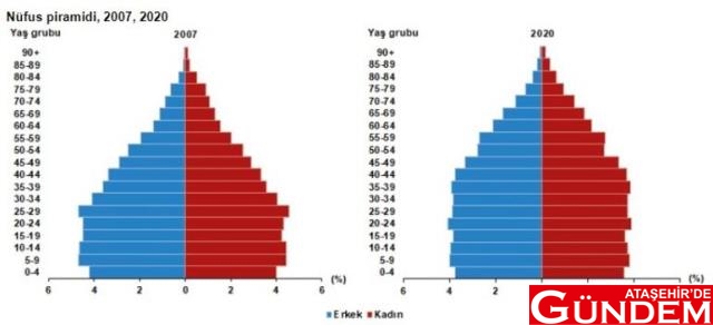Nüfus piramitleri, nüfusun yaş ve cinsiyet yapısında meydana gelen değişimi gösteren grafikler olarak tanımlanmaktadır. Türkiye'nin 2007 ve 2020 yılı nüfus piramitleri karşılaştırıldığında, doğurganlık ve ölümlülük hızlarındaki azalmaya bağlı olarak, yaşlı nüfusun arttığı ve ortanca yaşın yükseldiği görülmektedir.