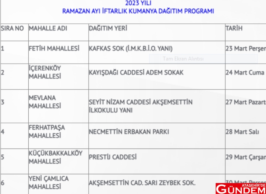 Ataşehir Belediyesi’nin geleneksel olarak her yıl Ramazan ayında hazırladığı iftar programı bu sene 18 noktada gerçekleştirilecek. Deprem bölgelerindeki aşevlerinde de devam edecek olan iftar programına ilişkin Ataşehir Belediye Başkanı Battal İlgezdi, “Hatay, Adıyaman, Kahramanmaraş ve Malatya’daki Sahra Aşevimizlerde dün akşam ilk iftarımızı verdik. Kazanlarda kaynayan sıcak yemeklerimizi depremzede yurttaşlarımızla paylaşmaya, Ramazan’da da kardeşliğimizi, yardımlaşma ve dayanışmamızı sürdürmeye devam edeceğiz.” ifadelerini kullandı.