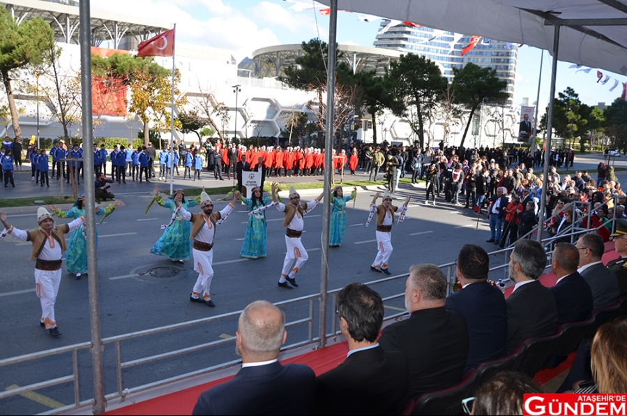 Ertaş’ın konuşmasının ardından tören alanında şiirler okundu. Zeybek ve halk oyunları gösterisi gerçekleşti. Ardından Atatürk Mahallesi’ni dolduran gençler geçit töreniyle protokolü selamladı.