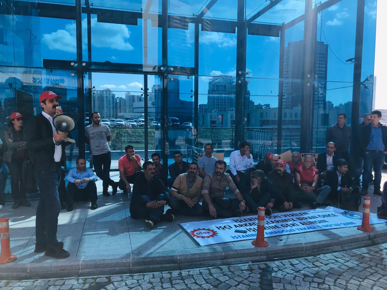 Ataşehir Belediyesi’nde çalışan iki sendika üyesinin belediye tarafından işten çıkarılması sendika üyelerini harekete geçirdi. DİSK’e bağlı İstanbul Anadolu Yakası 1.No’lu Şubesi işlerine son verilen arkadaşlarının bir an önce işlerine geri alınması için belediye önünde basın açıklaması gerçekleştirdiler.