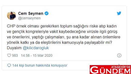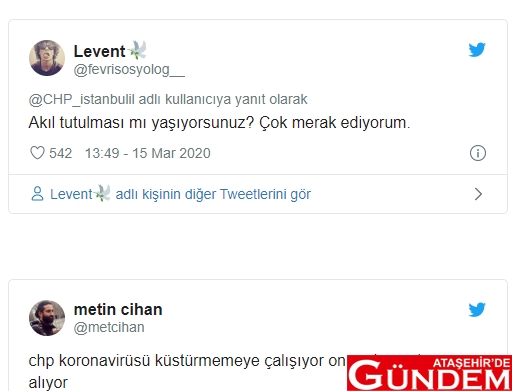 “Virüs yayılımı nasıl olur? Yurtdışı kaynaklı kontaminasyon ve riskleri nelerdir? Elma ile armut nasıl kıyaslanır? Önlemler alınarak bir toplantı nasıl yapılır? AKP’yi eleştirebilmek için yanına CHP’yi de koymalıyım kolaycılığı ve fikir sahibi olmadan bilgi sahibi olma cehaleti.”Cumhuriyet