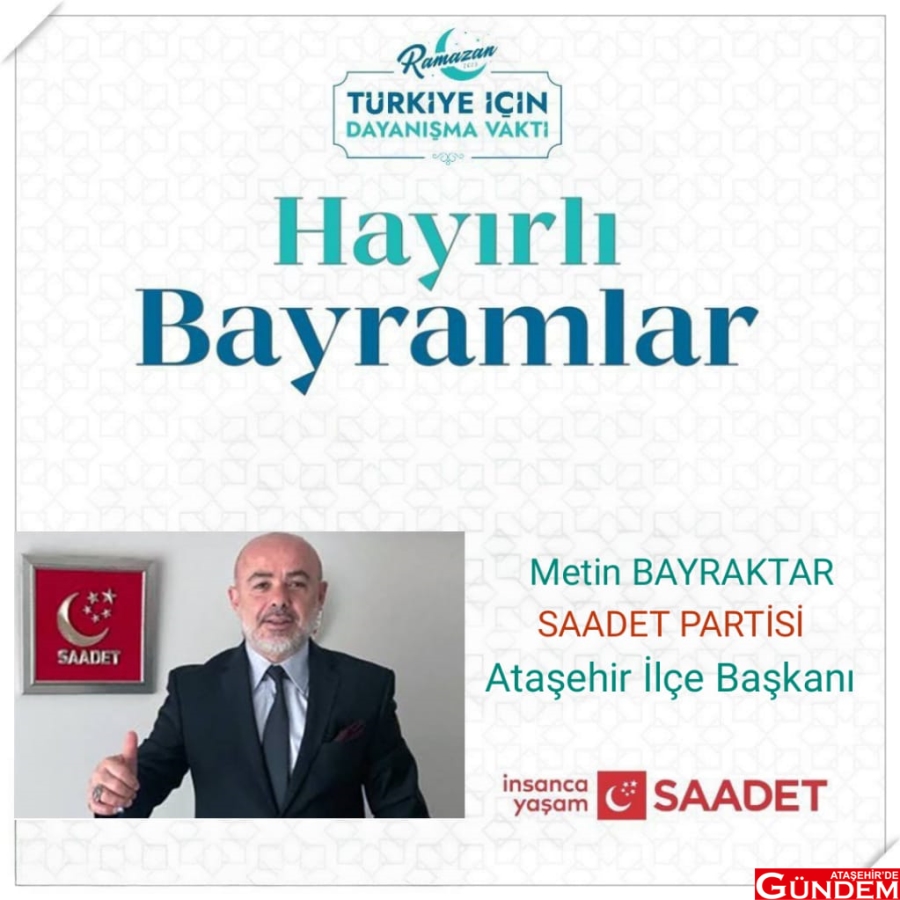 Saadet Partisi Ataşehir İlçe Başkanı Metin Bayraktar, Ramazan Bayramı mesajı paylaştı. Ramazan'ın hayırlı geçmesini belirten Bayraktar'ın bayram mesajında "Türkiye için dayanışma vakti" ifadeleri yer aldı.