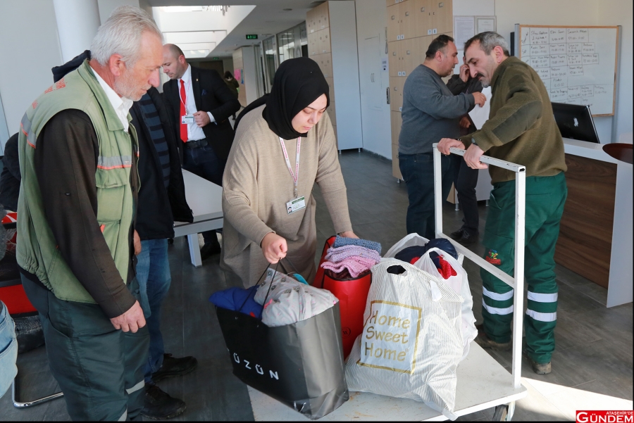 Deprem bölgesinde acil ihtiyaç duyulan malzemelerin toplanması, ayrıştırılması, paketlenmesi ve ulaşımının sağlanması için görev dağılımı gerçekleştirildi.