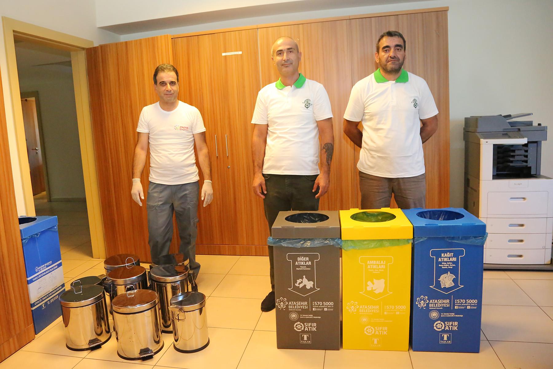 Tüm atıkların kaynağında ayrışmasını sağlayan Ataşehir Belediyesi’nde her katta; kağıt-karton atık için mavi renkli, plastik, cam ve metal atıklar için sarı renkli ve evsel nitelikli diğer atıklar için gri renkli olmak üzere, elektronik atık, bitkisel atık yağ, plastik kapak, atık floresan ve atık pil kutuların da yer aldığı sıfır atık toplama noktaları oluşturuldu.