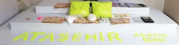Ataşehir'de düzenlenen operasyonda 850 gram kokain, 22 bin 50 uyuşturucu hap ele geçirildi.
