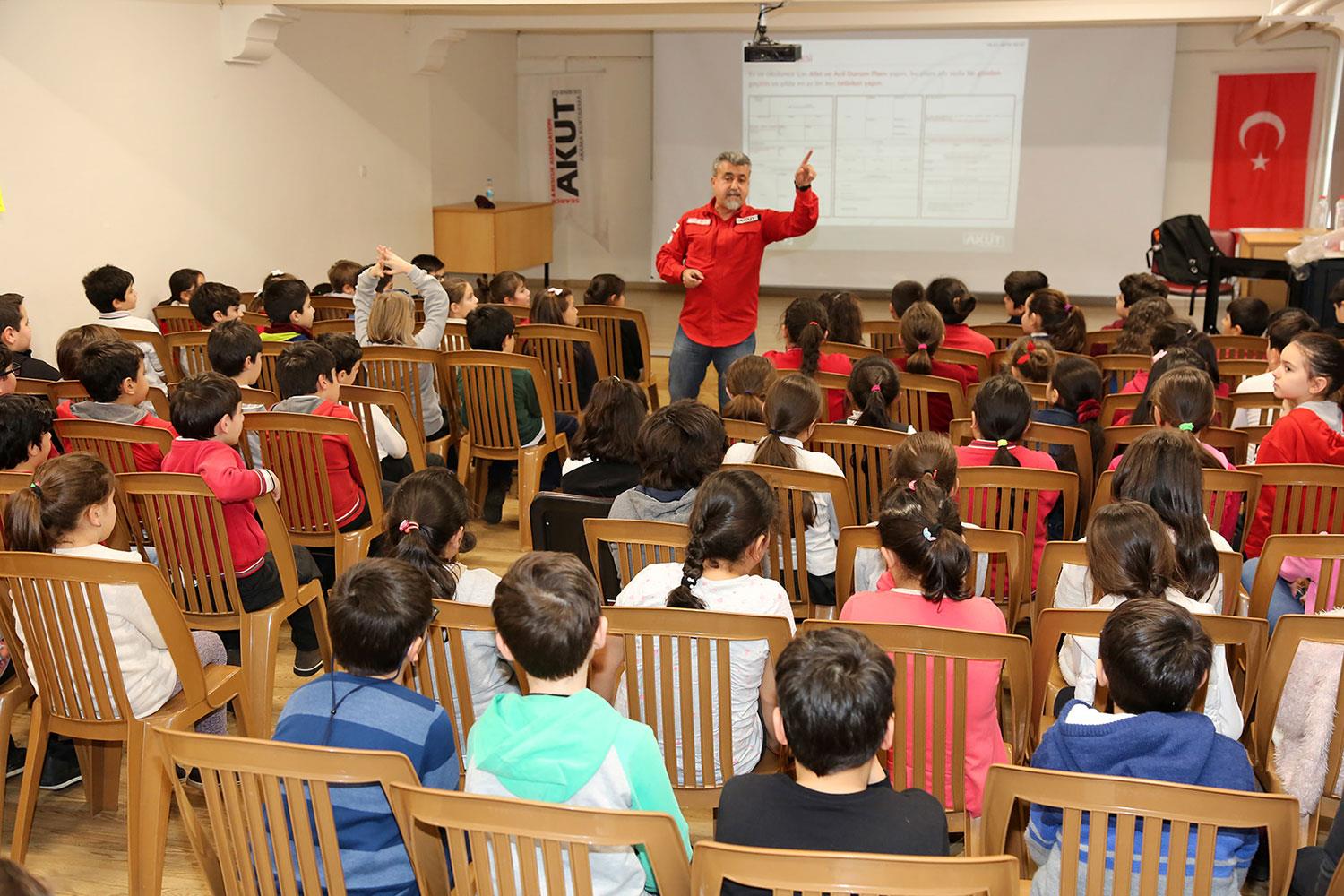 Ataşehir Belediyesi Afet Koordinasyon Merkezi (AKOM) ve AKUT işbirliğiyle Ataşehir’deki ilkokul, ortaokul ve liselerde yedi yıldır deprem eğitim seminerleri düzenleniyor.