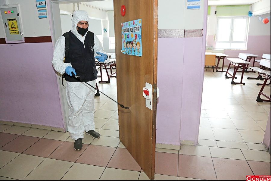Sınavların yapılacağı okullarda, öğrencilerin ve sınav yetkililerinin elle temas edebilecekleri sıralar, kapı kolları, masa ve sandalyeler başta olmak üzere; sınıflar, koridorlar, tuvalet ve lavabolar ayrıntılı biçimde dezenfekte edilerek okullar sınava hazır hale getirildi.