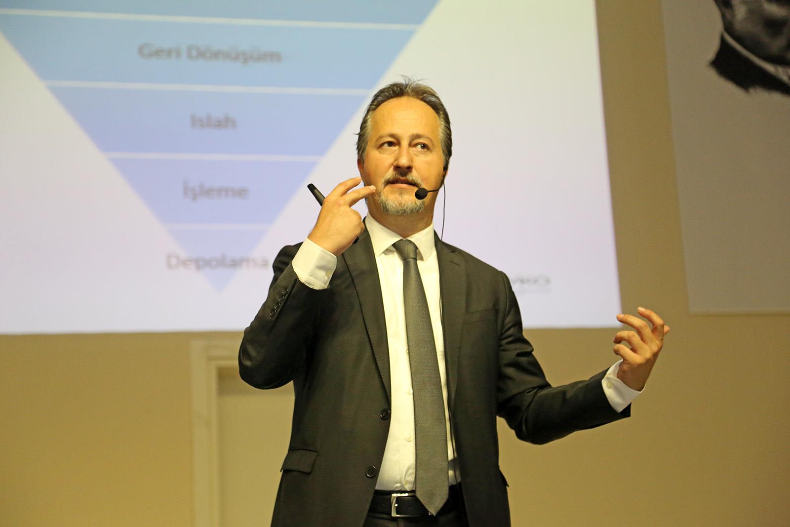 Murat Anaç eğitim seminerinde; ülkemizde ve dünyamızda meydana gelen çevre kirliliği ve boyutlarının son durumu, geri dönüşüm yöntemleri ve kullanım alanları, geri kazanımın yerküre için önemi ve Türkiye’de uygulanan geri dönüşüm sistemleri ile geri dönüşümün faydaları konuları hakkında sunum yaptı.