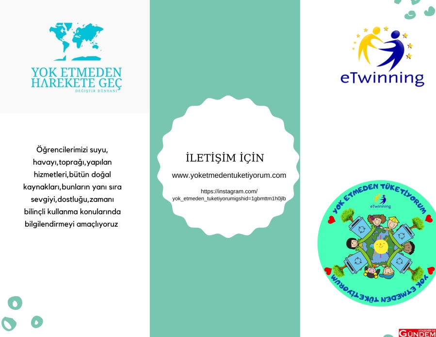 Yaşam boyu önemli olan kaynakların gerektiği kadar, idareli, dikkatli ve bilinçli tüketilmesi için tasarruf bilinci üzerine farkındalık oluşturan “Yok Etmeden Tüketiyorum” proje ekibi dünyanın değişeceğine inanarak doğa dostu projeye imza atıyorlar. Beş ayrı şehirden ve altı ayrı okuldan dokuz öğretmen olarak belirlenen ekip, yarının geleceklerine ışık oluyor. Proje sorumluları; Münire Gürlek, Yeliz Hamzaçebi, Elif Kırmızı, Elif Yılmaz, Harika Toker, Aybike Sezen, Özlem Kurt, Özlem Kara Güzel, Altan Hamzaçebi isimlerinden oluşuyor. Zoom ve çeşitli iletişim kanallarından ilerleyen projenin ayrıca blog kurulumu da gerçekleştirilerek daha fazla kişiye ulaşılması sağlanırken, oluşturulan blogda ekip yöneticilerinden Altan Hamzaçebi konuyla ilgili şunları söylüyor: “Sınırsız değildi kaynaklarımız. Ama onları o kadar çok ve hızlı tüketmeye başladık ki sonunda buzullar eridi; ekolojik denge bozuldu. İklimler değişip mevsimler zamanını şaşırdı. Ama yine de dönüyor dünya. Her şeye rağmen. Bize rağmen.” ve Altan Hamzeçebi projenin belki de çıkış cümlesini ifade ediyor; “Biz ne yapabiliriz?”