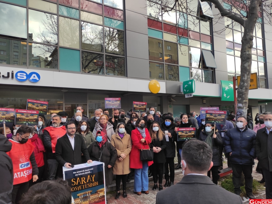 CHP fahiş elektrik faturaları ve zamlar için 81 ilde eş zamanlı “Zamları geri al” protestosu gerçekleştirdi. Kayışdağı Caddesi EnerjiSA önünde gerçekleştirilen eylemde CHP Ataşehir İlçe Başkanı Celal Yalçın, “Son zamanlarda gelen zamlardan dolayı vatandaş artık nefes alamıyor. Esnaf kepengini zor açıyor. Emekliler isyanda. İşçiler isyanda.” ifadeleriyle açıklamalarına başladı. Yalçın, konuşmasının devamında halktan birine söz vermek istediğini belirterek emekli bir vatandaşa mikrofonu uzattı. Emekli vatandaş (Yusuf Sinan), “Ben emekli bir vatandaşım. Emekli aylığıma 125 TL. zam yapılırken, diğer taraftan elektrik ve aynı zamanda doğal gaza yapılan zamlar bir aylık emek verdiğimin fazlasını aldı götürdü. Yeter artık diyoruz. Zamlar geri alınsın.” dedi. Daha sonra 50 metre kare dükkanı olduğunu ifade eden Esnaf Ali Kalkan dükkanına gelen yüksek elektrik faturasına isyan etti. Kalkan şunları söyledi: “Ben küçük bir esnafım. Ataşehir İçerenköy'de topu topu dükkanım elli metre kare. Fakat bana gelen elektrik faturası altı bin sekiz yüz yetmiş lira. Yani artık dayanacak gücümüz kalmadı. Kapatsak gene borç batağındayız. Kapatmasak yine aynı. Bıktık!”