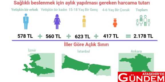 2003 Aralık ayında 4 kişilik bir ailenin, günlük minimum 15.7 TL’ye sağlıklı beslenebilmesine rağmen, bugün ancak 72.58 TL’ye sağlıklı beslenebildiği belirlendi. Buna göre