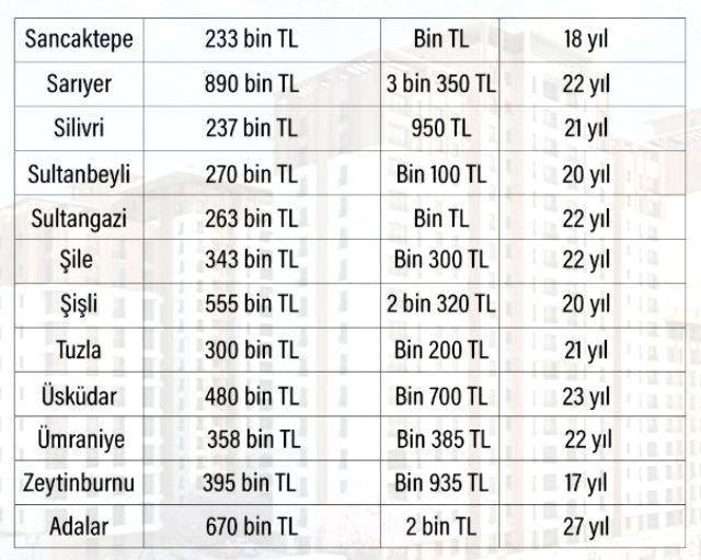 İstanbul genelinde satılıkta fiyat aralığı ortalamada ilçesine göre 200 bin TL'den başlayıp 1 milyonun üzerine çıkıyor. Kiralık tarafında ise 800 TL'den başlayıp 4 bin TL bandına kadar çıkıyor. Yine 1 milyon TL'lik bir konutun ortalama kirası 4 bin TL civarında iken söz konusu kira oranı ile geri dönüş süresi 20 yıl, 200 bin TL'lik 800 TL kiralı bir evin geri dönüşüm süresi de 20 yıl olarak karşımıza çıkıyor.