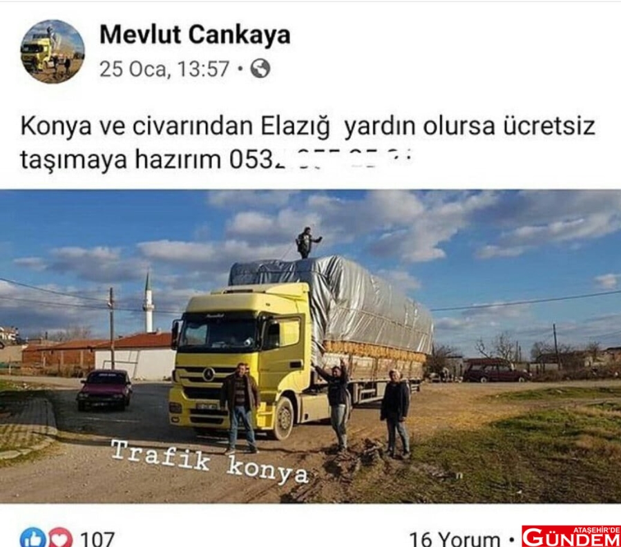 İntihar eden Mevlüt Çankaya’nın, Elazığ’da yaşanan depremin ardından yardım malzemelerini kamyonu ile ücretsiz taşıyabileceğini duyurduğu ve kişisel telefon numarasını dahi yazdığı sosyal medya paylaşımı da ortaya çıktı.