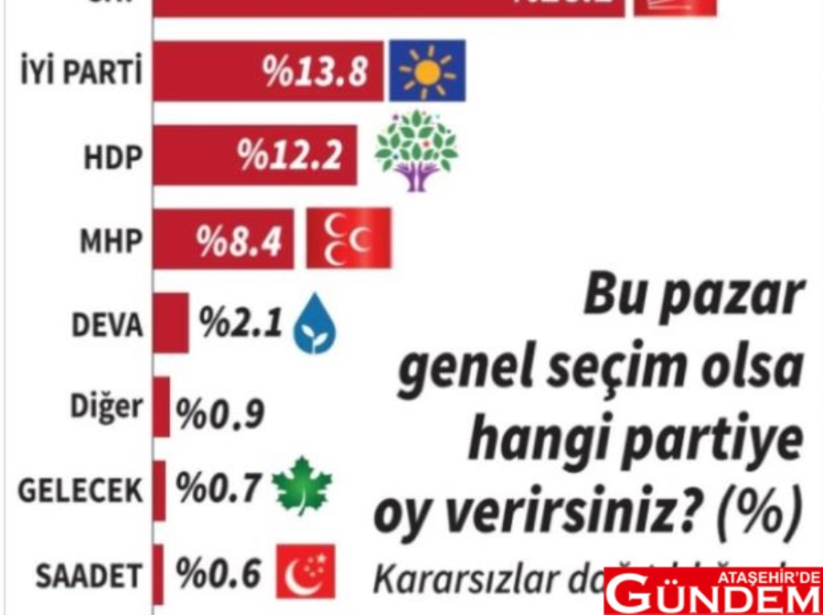Kararsızlar dağıtılmadan partilerin oyu şöyle oldu: AK Parti yüzde 25.6. CHP yüzde 22, İYİ Parti yüzde 10.3, HDP yüzde 9.8. MHP yüzde 6.5. DEVA Partisi yüzde 1.6. Diğer yüzde 0.8. Gelecek Partisi yüzde 0.6. Saadet Partisi yüzde 0.4. "Oy kullanmam" diyenlerin oranı ise yüzde 12.4, "Kararsızım" diyenlerin oranı da yüzde 10 olarak belirlendi.