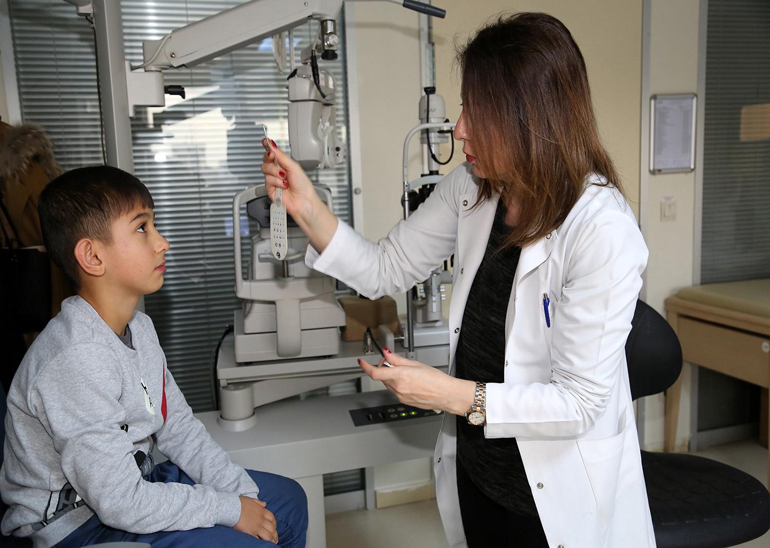 Göz muayenesi talep eden vatandaşlar evlerinden alınarak hastaneye götürülüyor, uzman doktorlar tarafından göz muayeneleri yapılıyor.