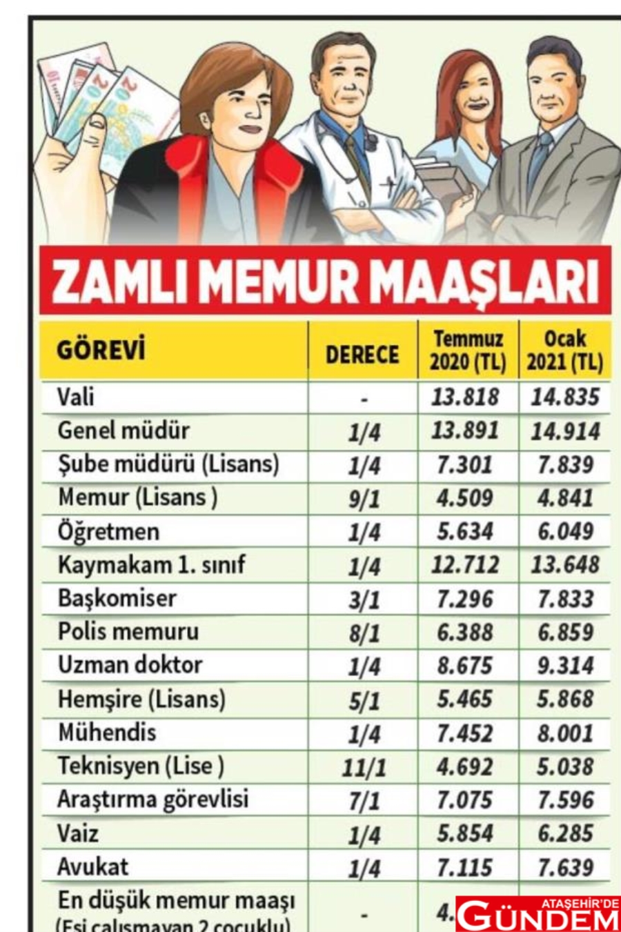 Milliyet'in haberine göre; Bu yılın ilk yarısında uygulanacak toplu sözleşme hükmü doğrultusunda memur maaşlarına yüzde 3 artış yapılması öngörülüyordu. Buna yüzde 4.33'lük enflasyon farkının eklenmesiyle memurlar, sözleşmeliler ve memur emeklilerinin maaş ve aylık artışı yüzde 7.33 oldu. Devlet memurları, sözleşmeliler, geçici personel ve memur emeklileri, zamlı maaş ve aylıklarını 15 Ocak'ta alacak.