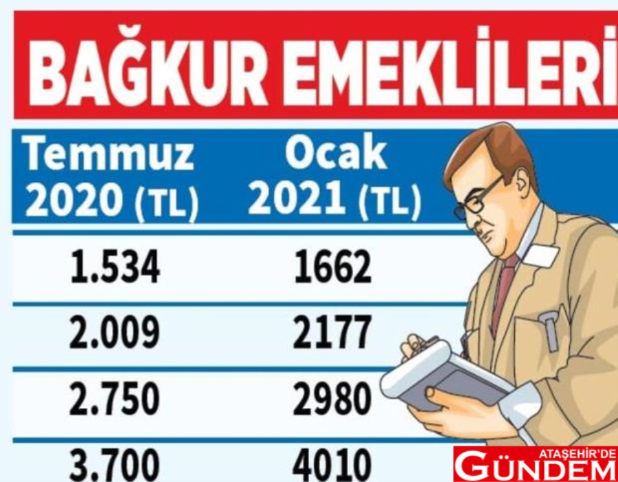 SSK ve Bağ-Kur emeklilerinin aylıkları da geçen yılın son 6 aylık enflasyonu oranına göre, yüzde 8.37'ye zamlanacak. Temmuz 2020'de, memur maaşları ile emekli memur, SSK ve Bağ-Kur emekli aylıklarına yüzde 5.75 oranında zam yapılmıştı.